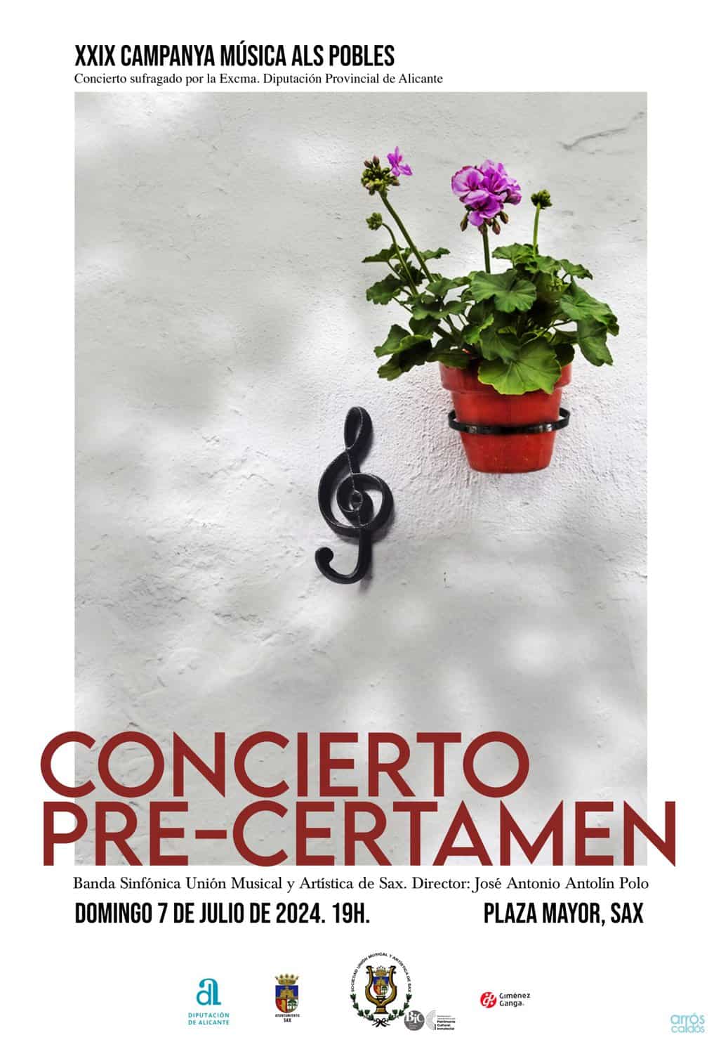 Bajo la batuta de su director, José Antonio Antolín Polo, los músicos de la agrupación sajeña interpretará en primer lugar las piezas del certamen: el pasodoble de libre elección «Música y Vinos» de Manuel Morales, la obra obligada «Ceremonies» de la compositora Ellen Taaffe Zwilich y la obra libre «Tierra Mítica» de Bernardo Adam Ferrero. El concierto concluirá con los pasodobles «Bellesa i Alegria» de Miguel Ángel Mas y «Unión Musical Sax» de Miguel Villar.