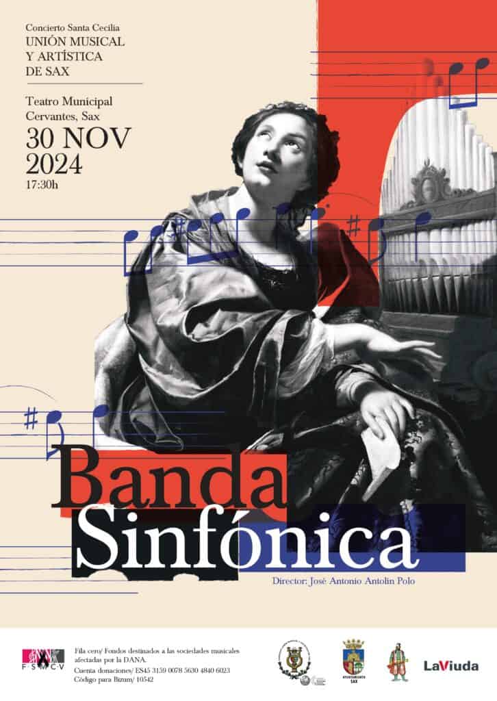 La Unión Musical y Artística de Sax culminará la celebración de Santa Cecilia el próximo fin de semana con el concierto de santa Cecilia de su banda sinfónica que acontecerá el sábado 30 de noviembre a las 17:30 horas en el Teatro Cervantes de Sax.