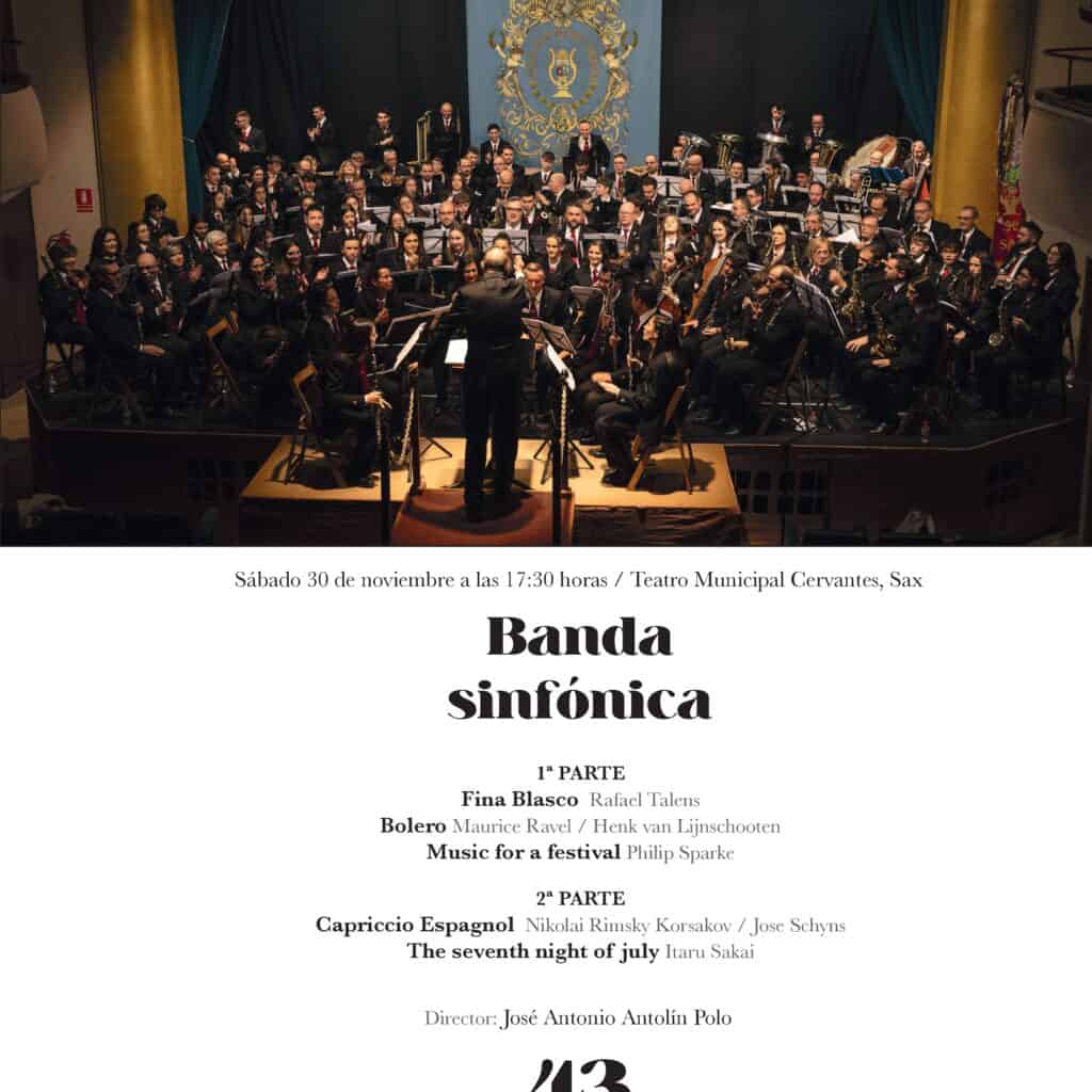 El concierto tendrá lugar el próximo sábado 30 de noviembre a las 17:30h en el Teatro Cervantes de Sax y tendrá carácter benéfico para las sociedades musicales afectadas por la DANA